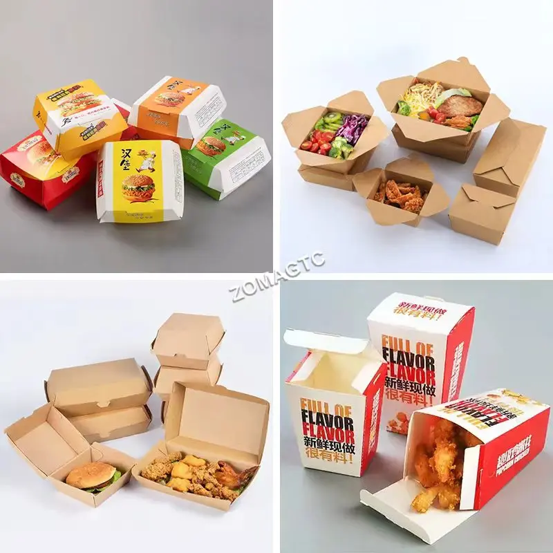 The dual-station hamburger box machine is mainly designed for the automatic production of hamburger boxes. Its core functions include automatic material feeding (for paper sheets),